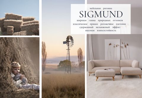 Sigmund для страха нет причин Рогожка – это плотный материал простого плетения и, как бы пафосно это не звучало, рогожка – материал с многовековой историей. Именно за счет своего плетения рогожка стала первой тканью, который научился изготавливать человек. Наверное, есть что-то первобытное, в том, какое чувство уверености, комфорта и спокойствия мы до сих пор испытываем, прикасаясь, да и просто глядя на этот материал. Коллекция Sigmund яркий представитель семейства рогожек. Его яркий характер отлично сочетается с природной колор-картой в 11 цветах, меланжевым эффектом и аутентичной прямотканой фактурой. Нет ничего удивительного в том, что Sigmund получил большую популярность среди производителей и покупателей мебели: он прекрасно выглядит в абсолютно разных интерьерах, подходит на любые формы, имеет высокую сткойкость к истиранию, легко чистится, а также радует отличным сочетанием цены и качества. Ко всем преимуществам плотная двойная подложка, которая делает коллекцию еще более прочной и практичной. Рогожка Sigmund - что естественно, то… Прекрасно!